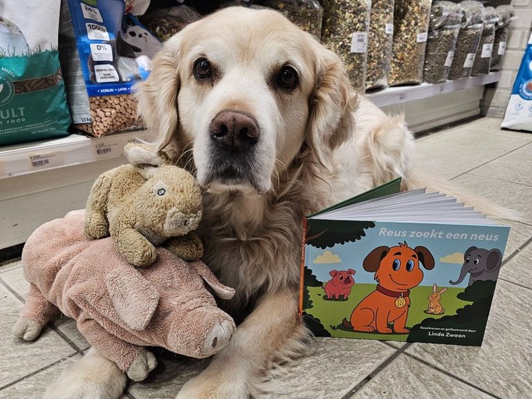 Reus zoekt een neus is nu ook te koop bij Dierenspeciaalzaak Rijnbeek! Lieve hond Koda is al blij met het nieuwe boek. Jij ook?